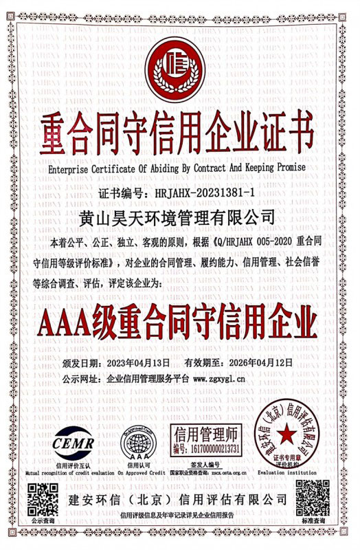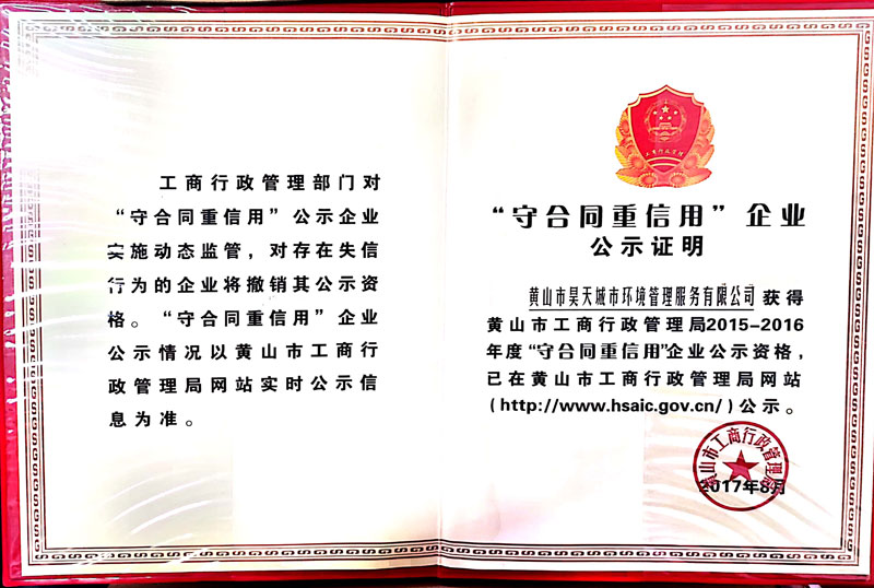 重合同守信用企业等级证书